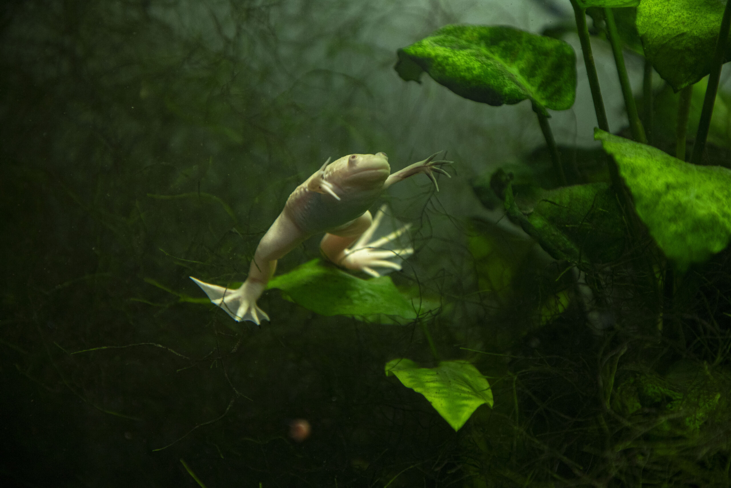 Colecția de amfibieni include specii precum broasca săgeată verde, broasca africană cu gheare și axolotl. Acești amfibieni sunt remarcabili pentru culorile lor deosebite și capacitatea de regenerare.