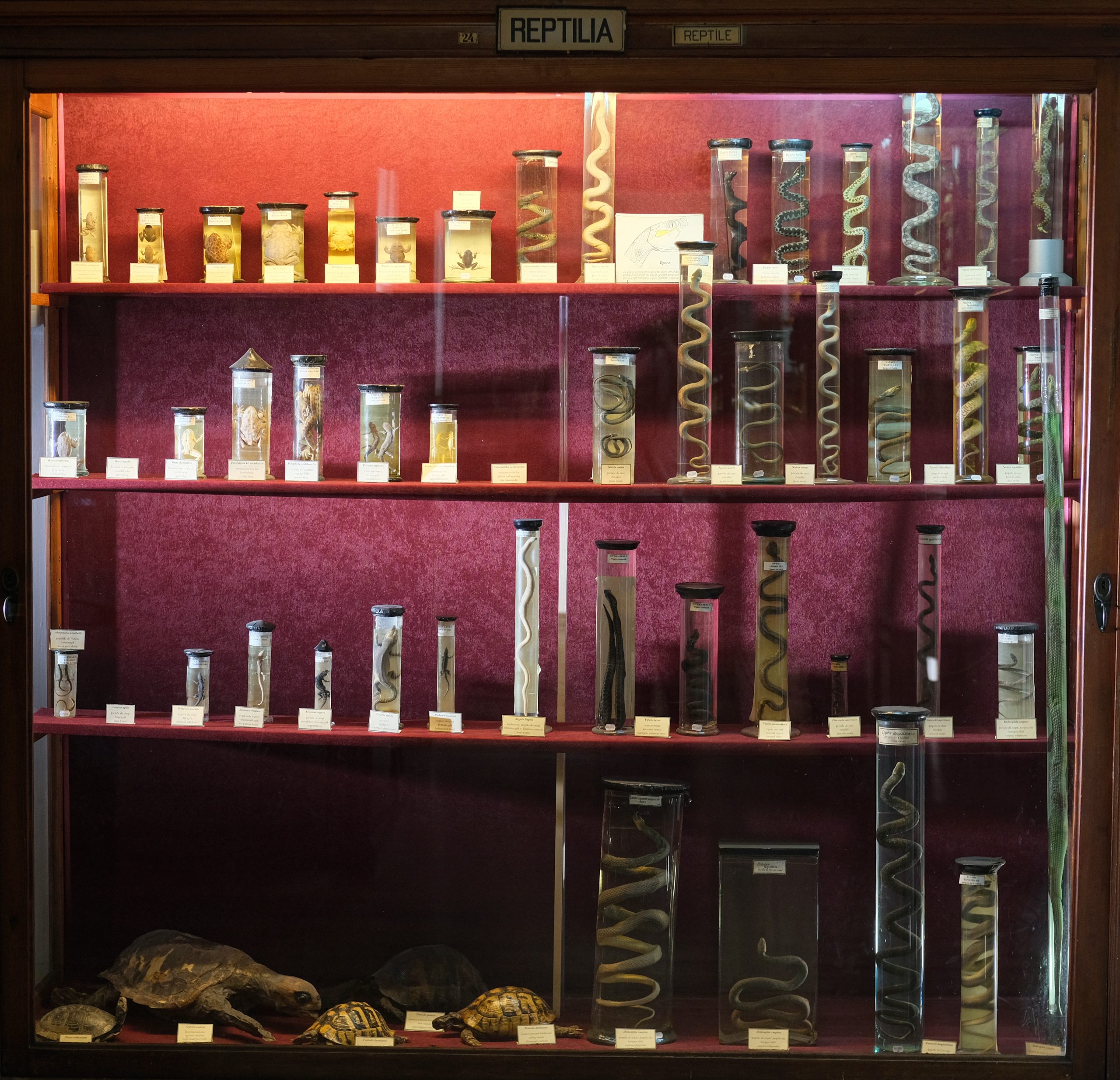 Printre speciile valoroase din colecțiile de amfibieni și reptile se numără exemplare de crocodilieni din Asia, Africa și America, țestoasa uriașă și exemplarul de tătara (fosilă vie).