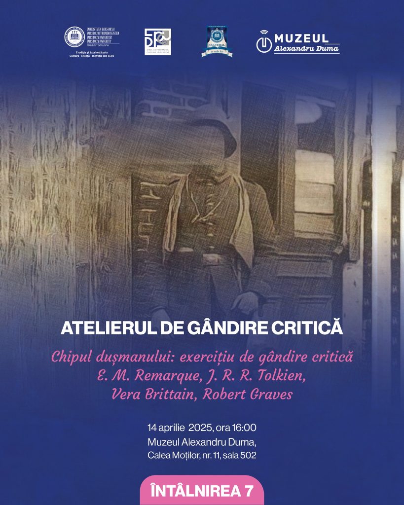 Atelierul de gândire critică: „Chipul dușmanului: Exercițiu de gândire critică. E. M. Remarque, J. R. R. Tolkien, Vera Brittain, Robert Graves”
