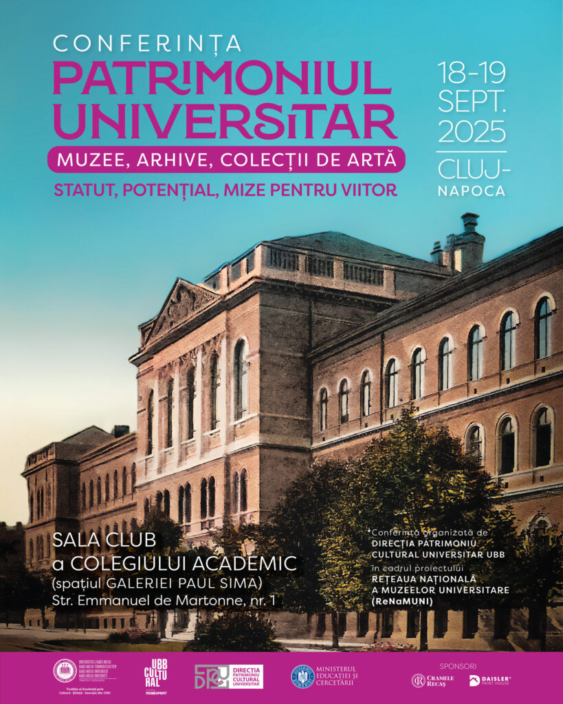 Universitatea Babeș-Bolyai, prin Direcția Patrimoniu Cultural Universitar, are deosebita plăcere de a vă invita la conferința intitulată „Patrimoniul universitar (muzee, arhive, colecții de artă): statut, potențial, mize pentru viitor”, care se va desfășura la Cluj-Napoca în zilele de 18-19 septembrie 2025, în cadrul proiectului „Rețeaua Națională a Muzeelor Universitare (ReNaMUNI)”, finanțat de Ministerul Educației și Cercetării.
