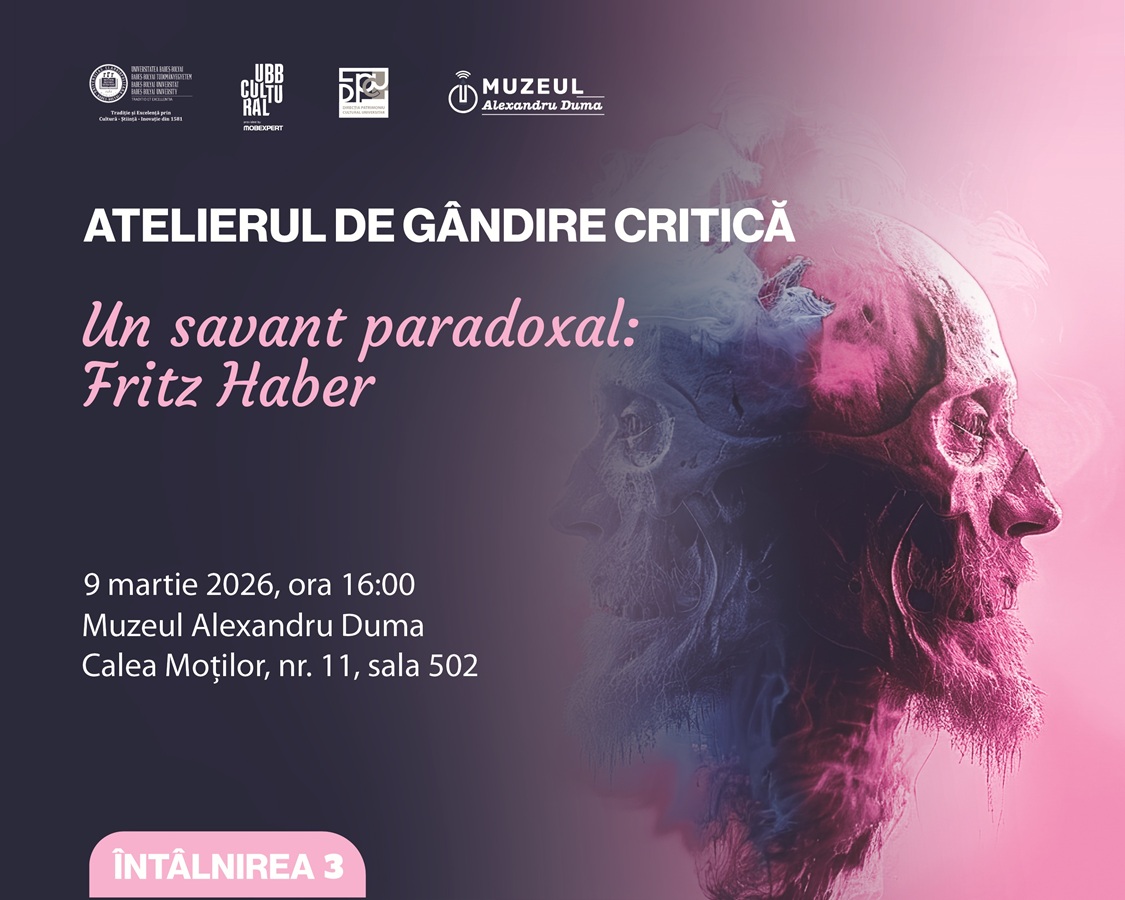 Muzeul Alexandru Duma Calea Moților, nr. 11, Cluj-Napoca, Cluj, RomaniaMuzeul Alexandru Duma anunță lansarea înscrierilor pentru cele trei „Ateliere de gândire critică” pe care le organizează în anul universitar 2025-2026 sub titlul „Savanții și …