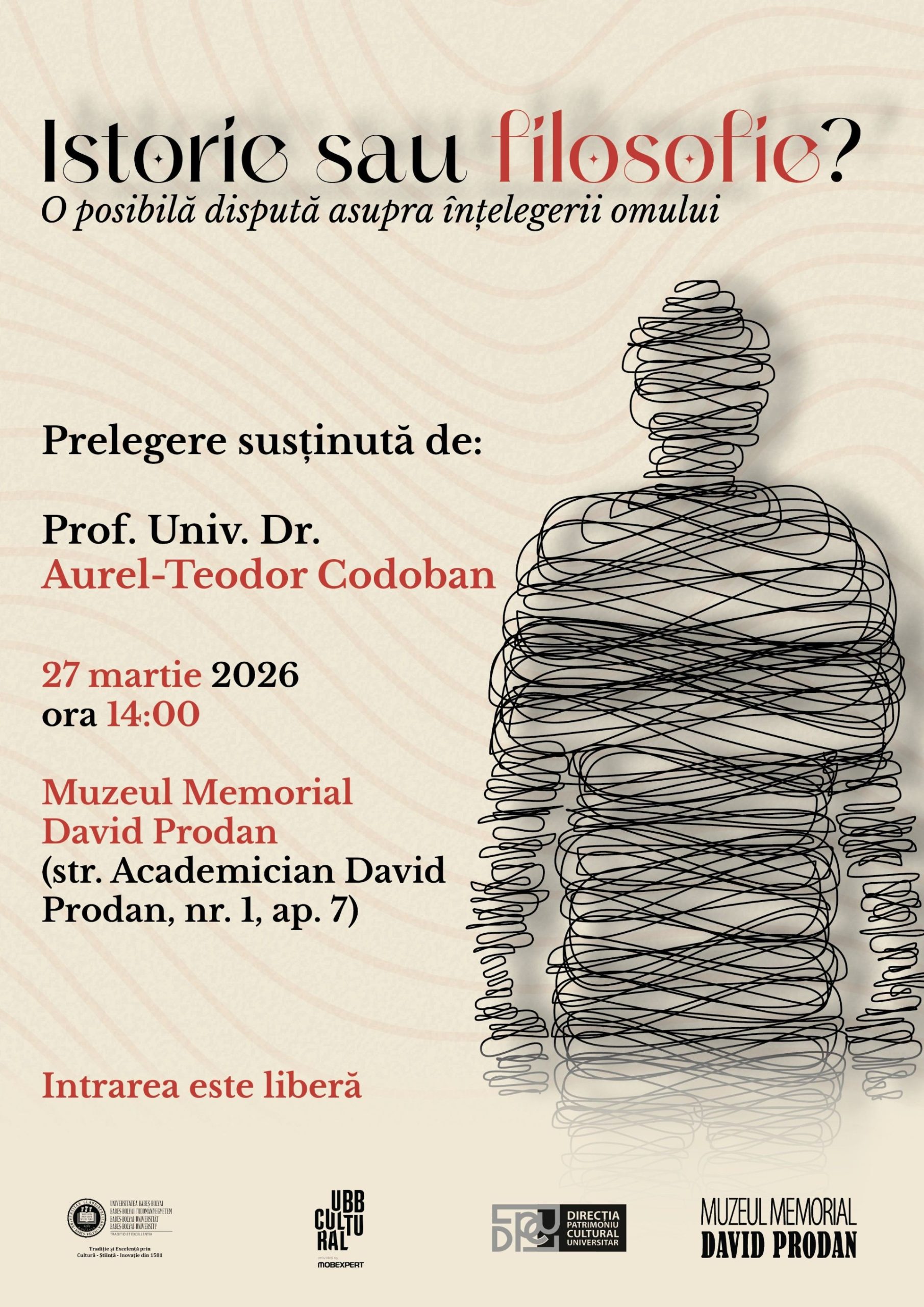 Muzeul Memorial David Prodan Str. Academician David Prodan, nr. 1, ap. 7,, Cluj-Napoca, Cluj, RomaniaDirecția Patrimoniu Cultural Universitar a Universității Babeș-Bolyai, prin Muzeul Memorial David Prodan, vă invită la prelegerea „Istorie sau filosofie? O posibilă dispută asupra înțelegerii omului”, …