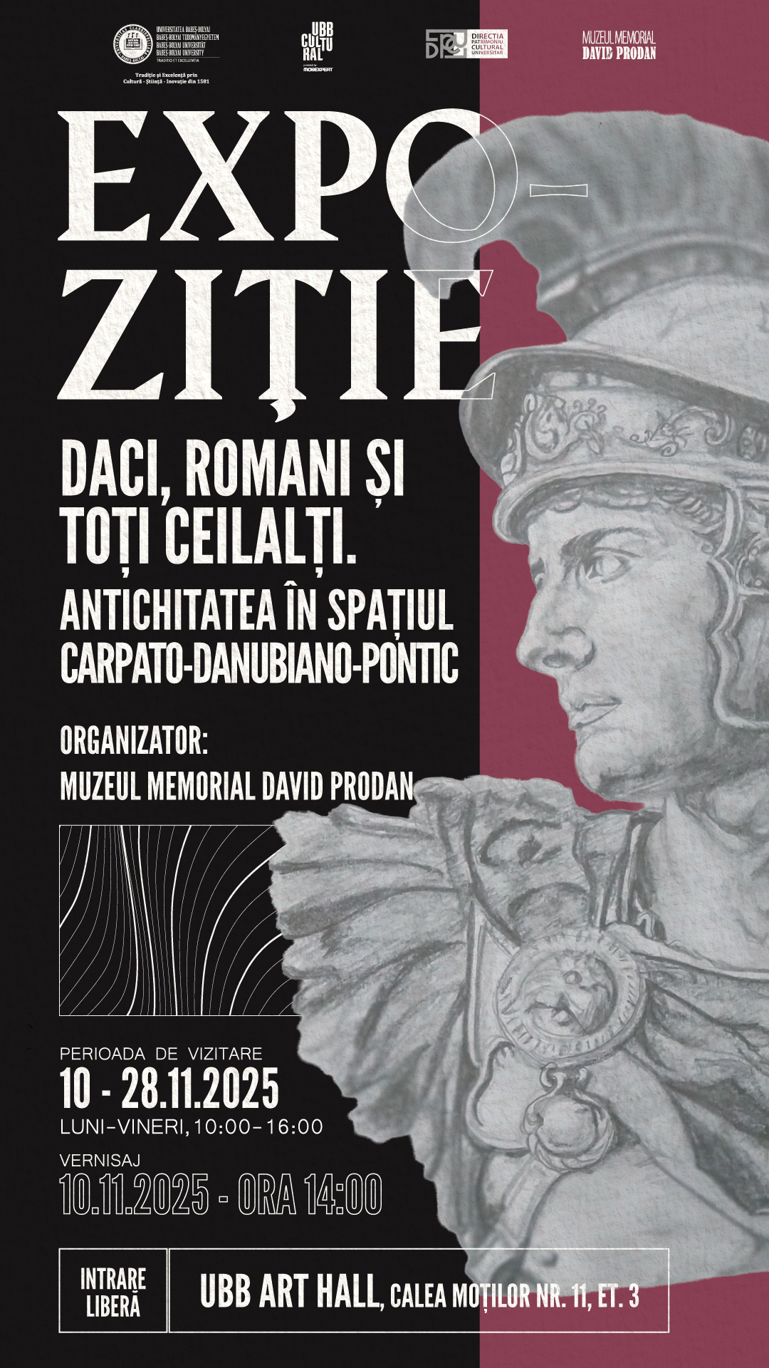 UBB Art Hall Calea Moților nr. 11, Cluj-Napoca, ClujDirecția Patrimoniu Cultural Universitar a Universității Babeș-Bolyai, prin Muzeul Memorial David Prodan, organizează expoziția de grafică Daci, romani și toți ceilalți. Antichitatea în spațiul carpato-danubiano-pontic. …